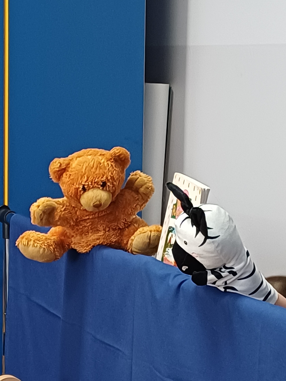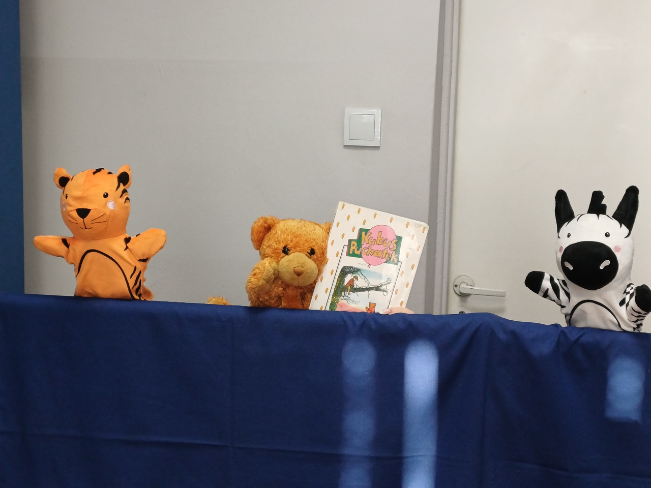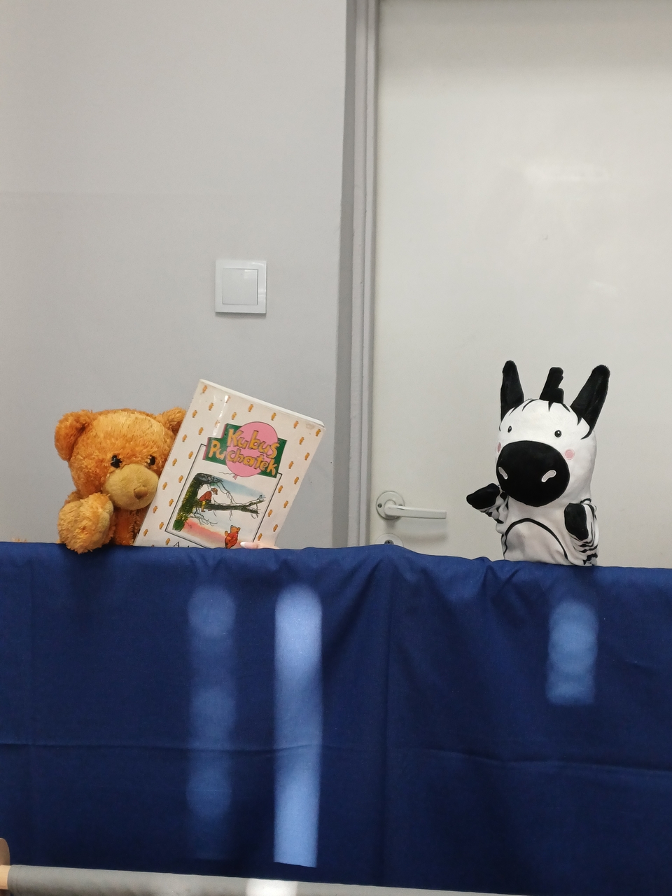 W przedstawieniu pacynkowym wzięły udział uczennice klasy 8a: Helena, Patrycja, Zuzanna oraz Nadia, a przy pasowaniu pomagała Lena – uczennica klasy 6a.