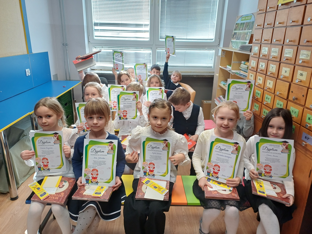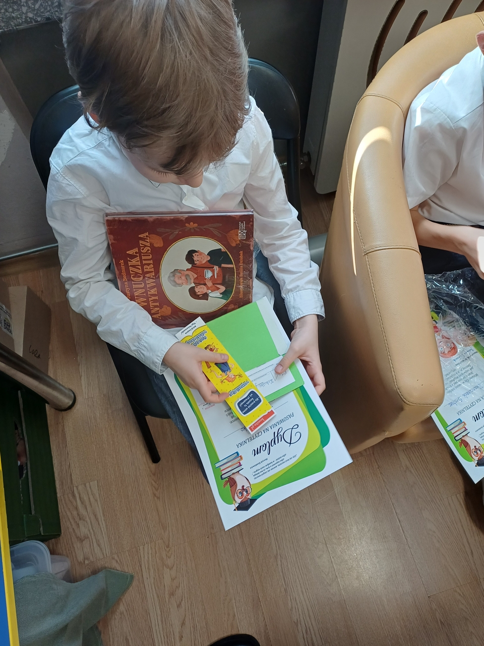 Na pamiątkę tego wydarzenia dzieci otrzymały dyplom, zakładkę oraz książkę pt. „Wnuczka antykwariusza” Justyny Bednarek, którą Instytut Książki dostarczył pierwszoklasistom