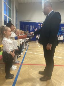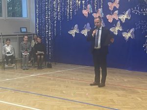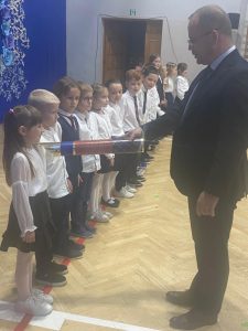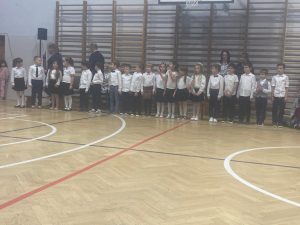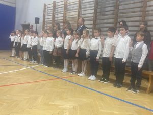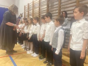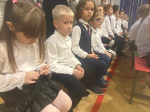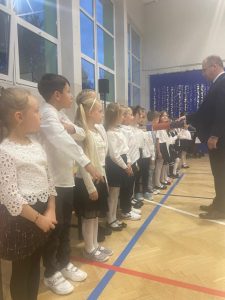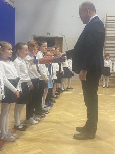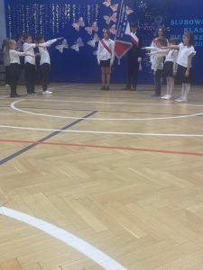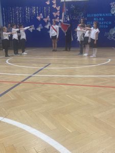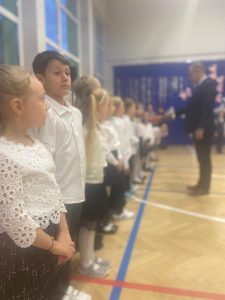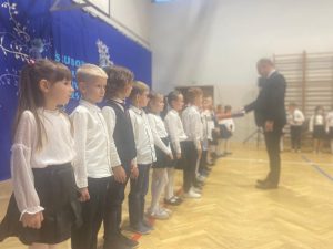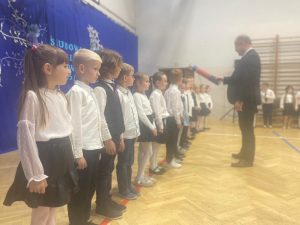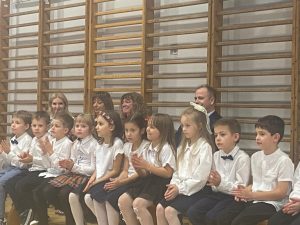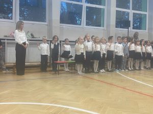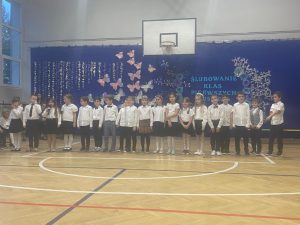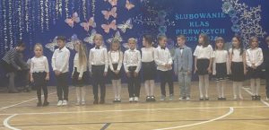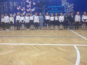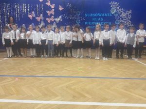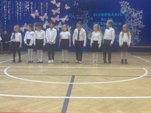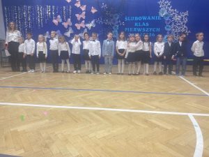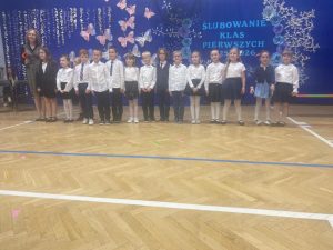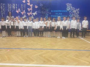 W czwartek 23 października odbyło się w naszej szkole uroczyste Ślubowanie klas pierwszych. Każda klasa przygotowała krótki występ artystyczny. Wśród zgromadzonych gości byli rodzice, nauczyciele z zaprzyjaźnionych przedszkoli oraz przedstawiciele grona pedagogicznego. Dzieci zostały pasowane na pełnoprawnych uczniów naszej szkoły. Aktu pasowania dokonali Pan dyrektor Grzegorz Nicpoń i Pani wicedyrektor Dorota Martinek. Uroczystość poprowadziły uczennice klasy 5b. Po Ślubowaniu dzieci pozowały do zdjęć na tle pięknej dekoracji. Następnie udały się na poczęstunek. Był to dla nich i ich rodzin dzień pełen niezapomnianych wrażeń.