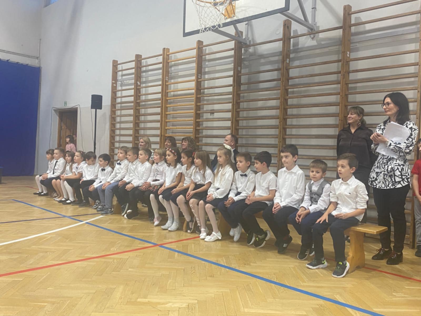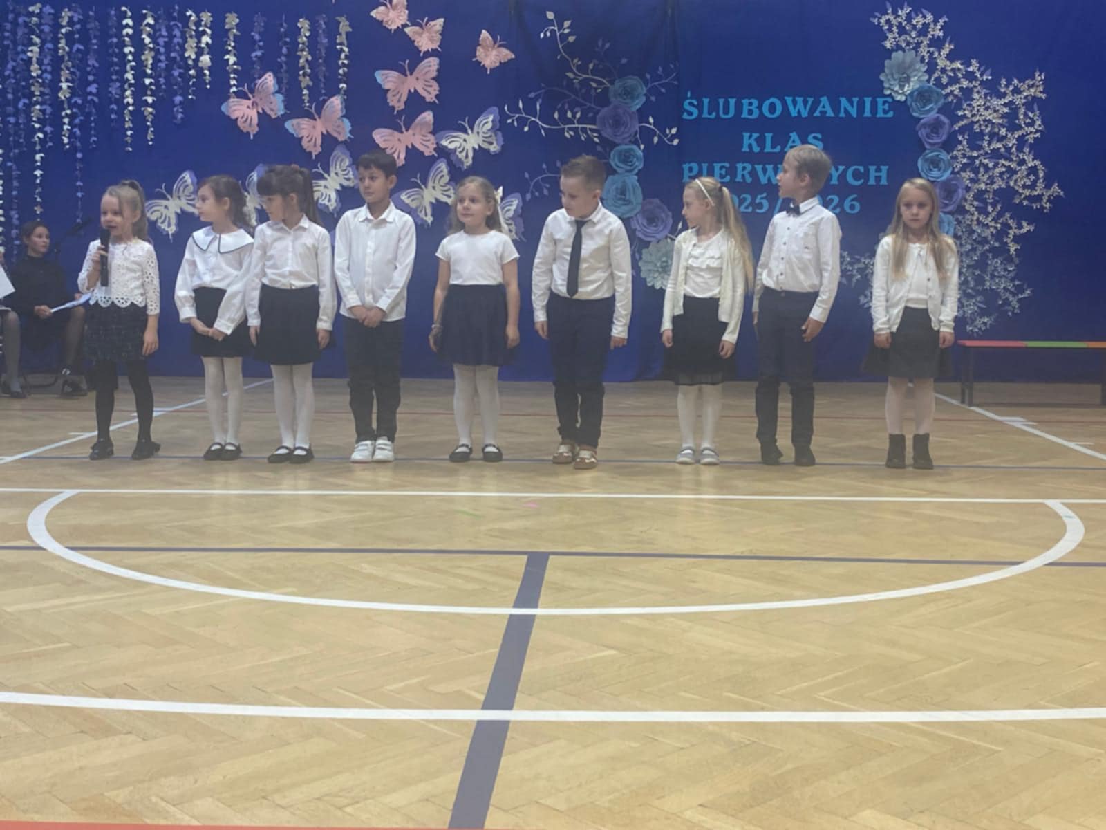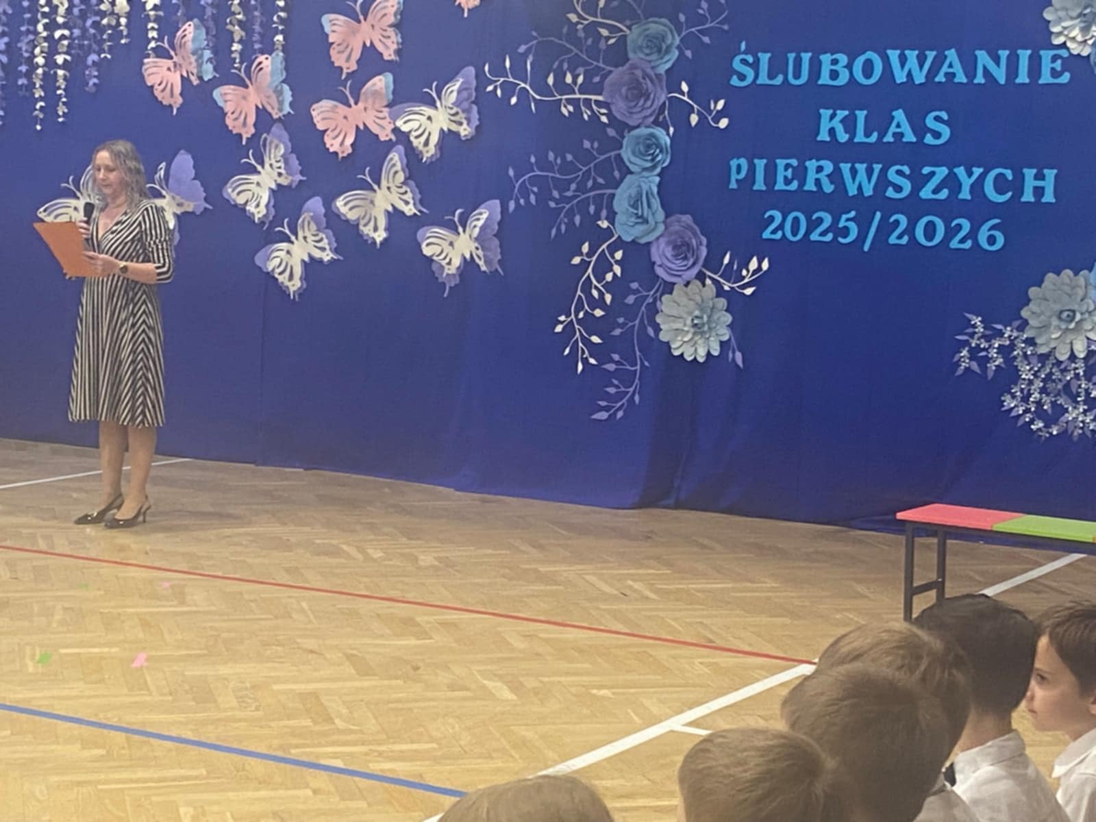 W czwartek 23 października odbyło się w naszej szkole uroczyste Ślubowanie klas pierwszych. Każda klasa przygotowała krótki występ artystyczny. Wśród zgromadzonych gości byli rodzice, nauczyciele z zaprzyjaźnionych przedszkoli oraz przedstawiciele grona pedagogicznego. Dzieci zostały pasowane na pełnoprawnych uczniów naszej szkoły. Aktu pasowania dokonali Pan dyrektor Grzegorz Nicpoń i Pani wicedyrektor Dorota Martinek. Uroczystość poprowadziły uczennice klasy 5b. Po Ślubowaniu dzieci pozowały do zdjęć na tle pięknej dekoracji. Następnie udały się na poczęstunek. Był to dla nich i ich rodzin dzień pełen niezapomnianych wrażeń.