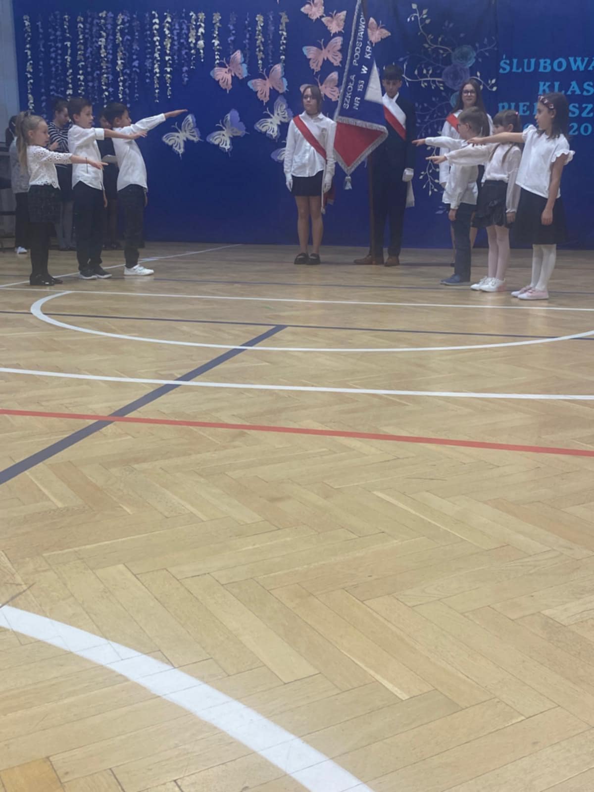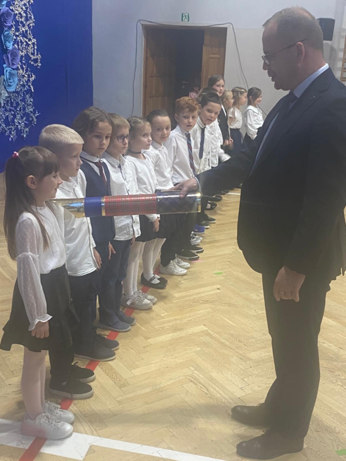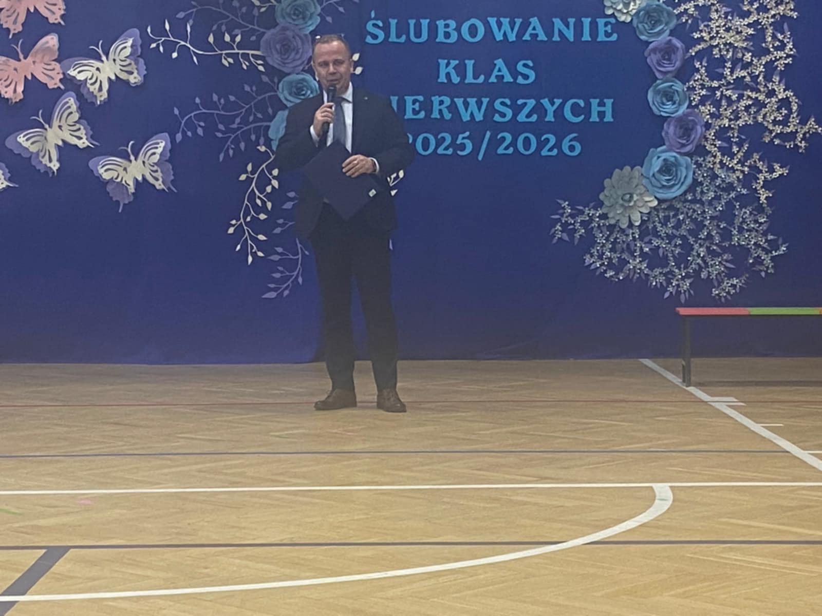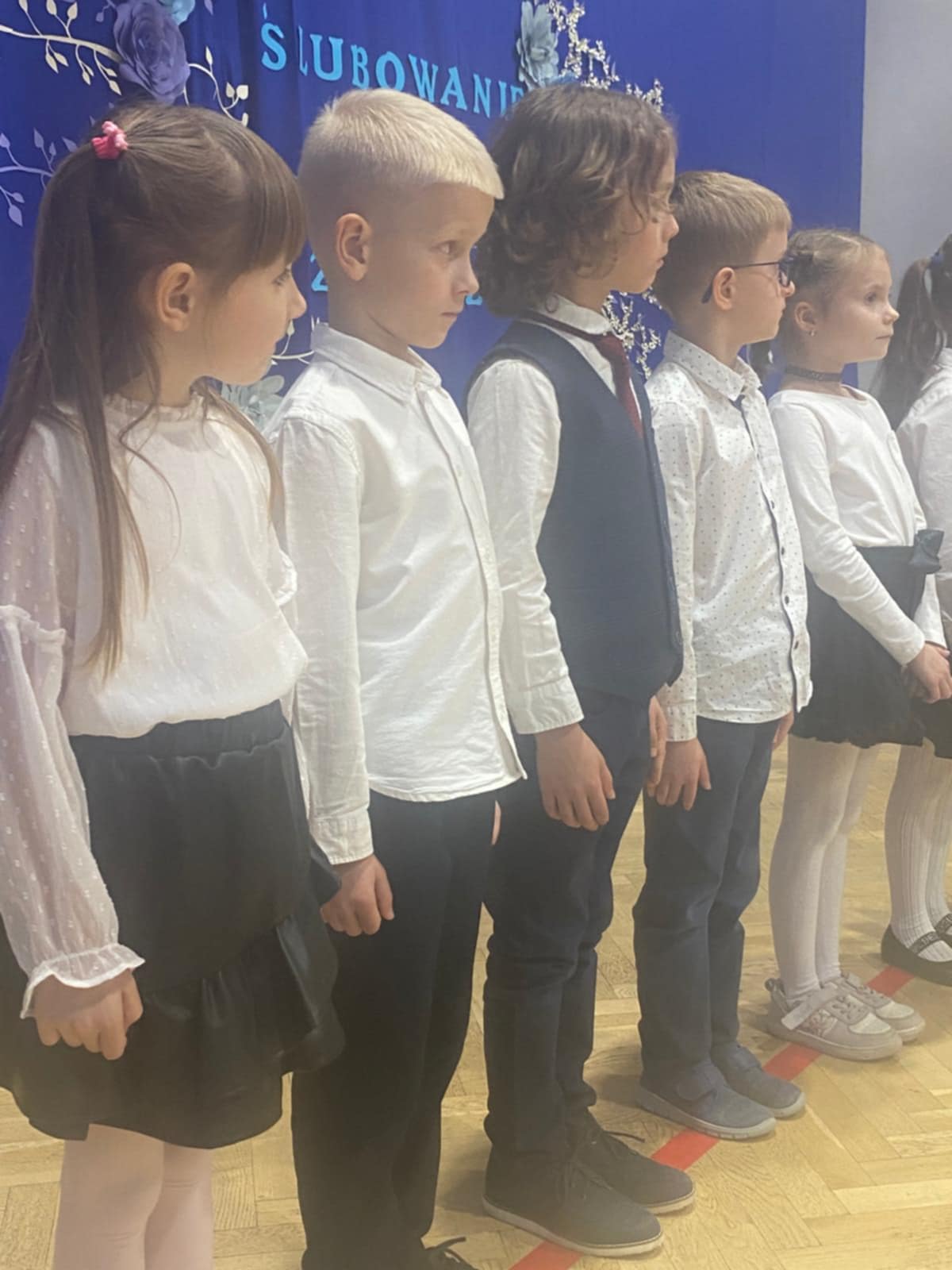 W czwartek 23 października odbyło się w naszej szkole uroczyste Ślubowanie klas pierwszych. Każda klasa przygotowała krótki występ artystyczny. Wśród zgromadzonych gości byli rodzice, nauczyciele z zaprzyjaźnionych przedszkoli oraz przedstawiciele grona pedagogicznego. Dzieci zostały pasowane na pełnoprawnych uczniów naszej szkoły. Aktu pasowania dokonali Pan dyrektor Grzegorz Nicpoń i Pani wicedyrektor Dorota Martinek. Uroczystość poprowadziły uczennice klasy 5b. Po Ślubowaniu dzieci pozowały do zdjęć na tle pięknej dekoracji. Następnie udały się na poczęstunek. Był to dla nich i ich rodzin dzień pełen niezapomnianych wrażeń.