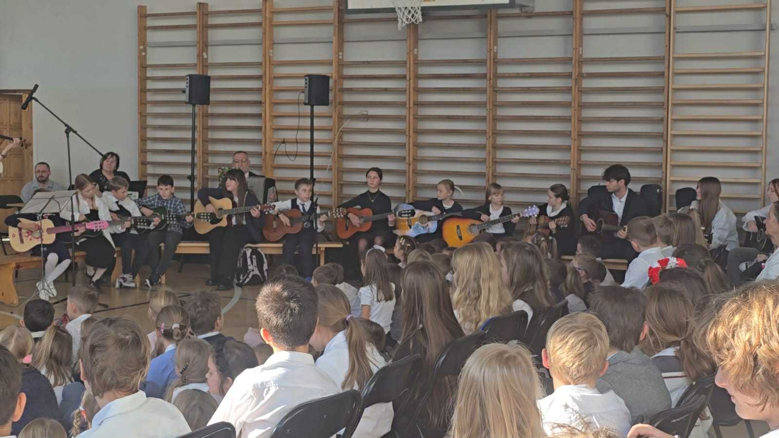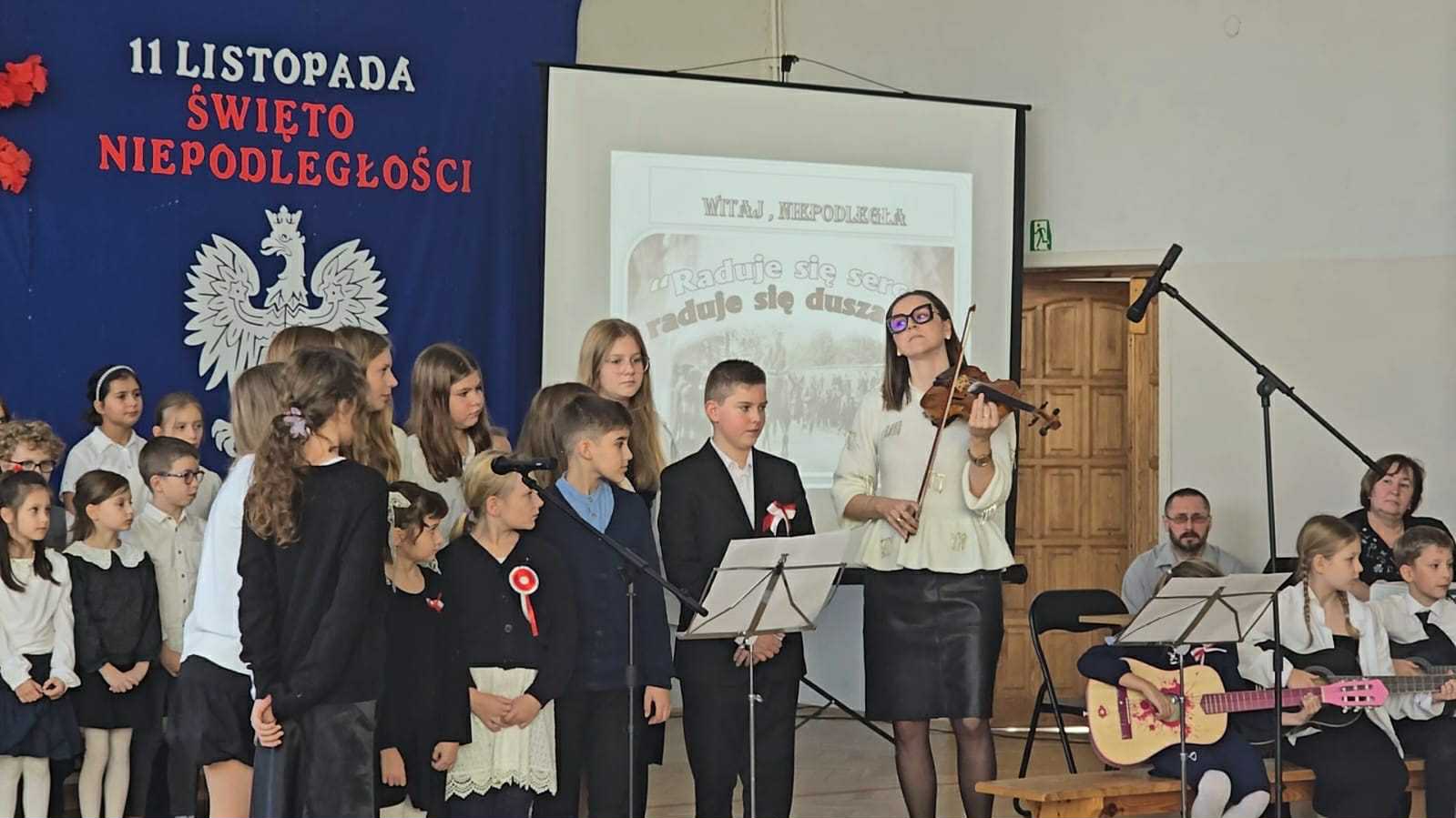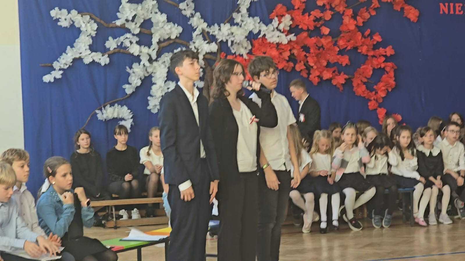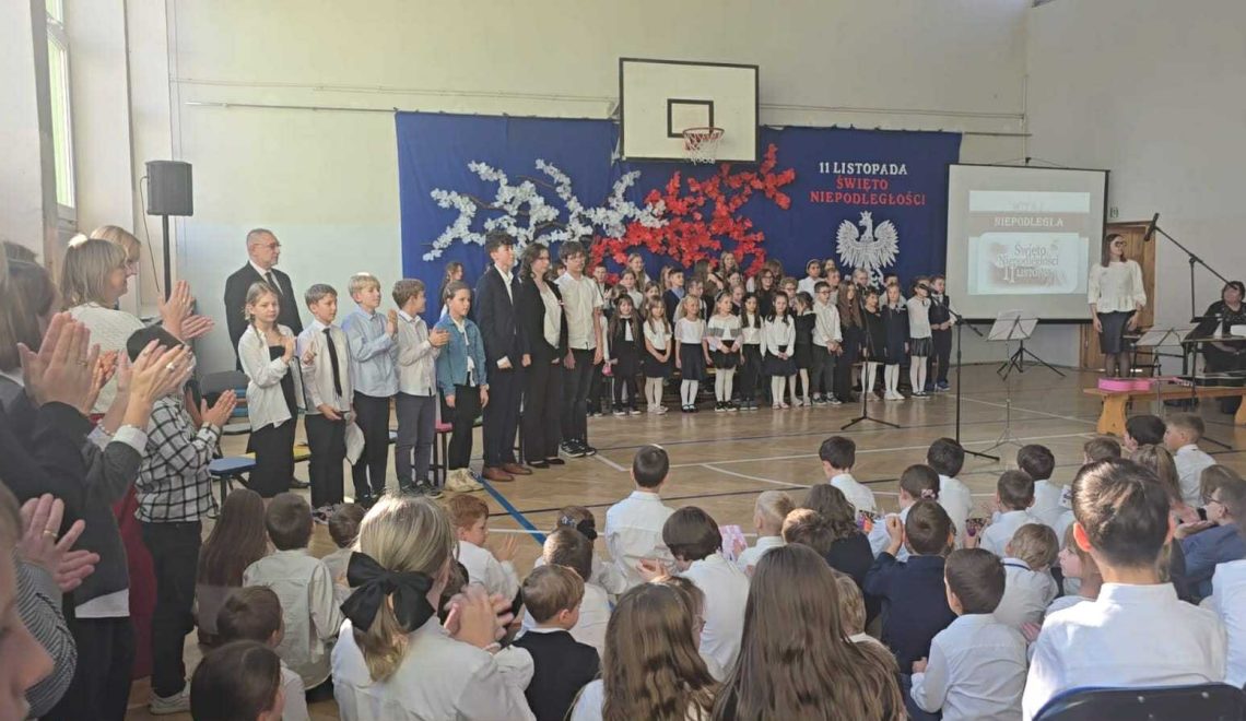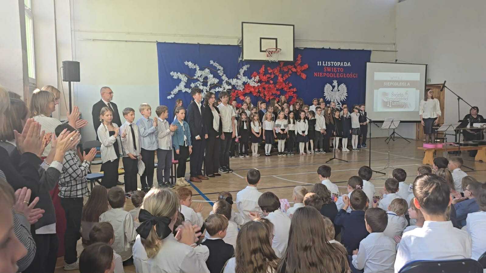 Uczniowie i nauczyciele naszej szkoły wzięli dziś udział w akademii z okazji kolejnej rocznicy Odzyskania Niepodległości przez Polskę. Szkolny chór, zespół instrumentalistów oraz grupa lektorów z nauczycielami zaprezentowali wiadomości historyczne oraz piękny muzyczny i patriotyczny repertuar. Na zakończenie szkolnej akademii wszyscy z dumą i powagą odśpiewaliśmy Hymn Polski.