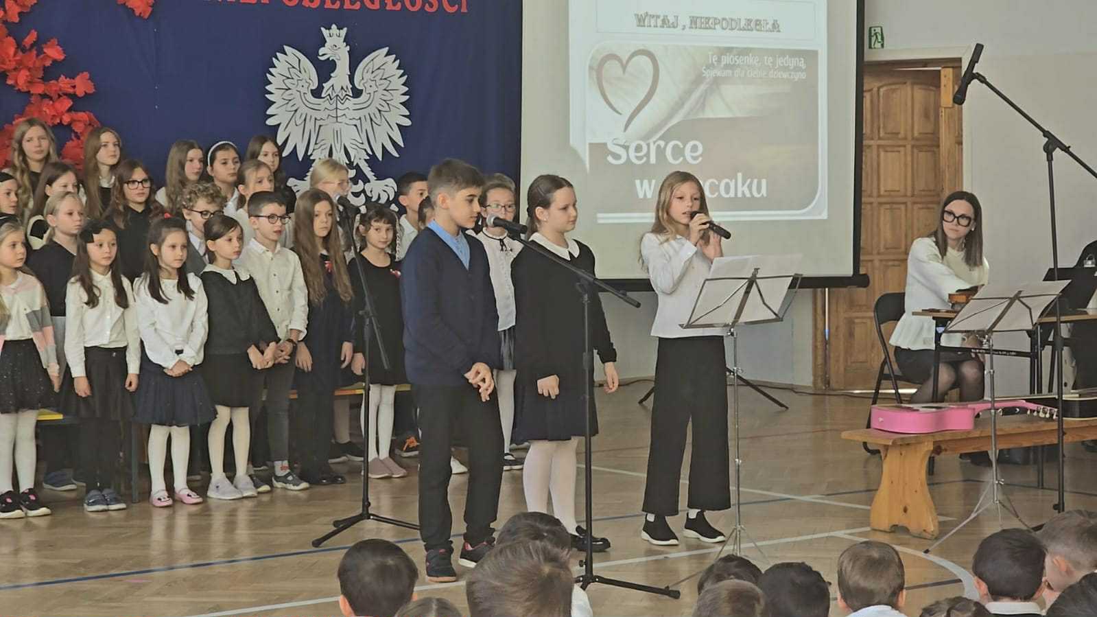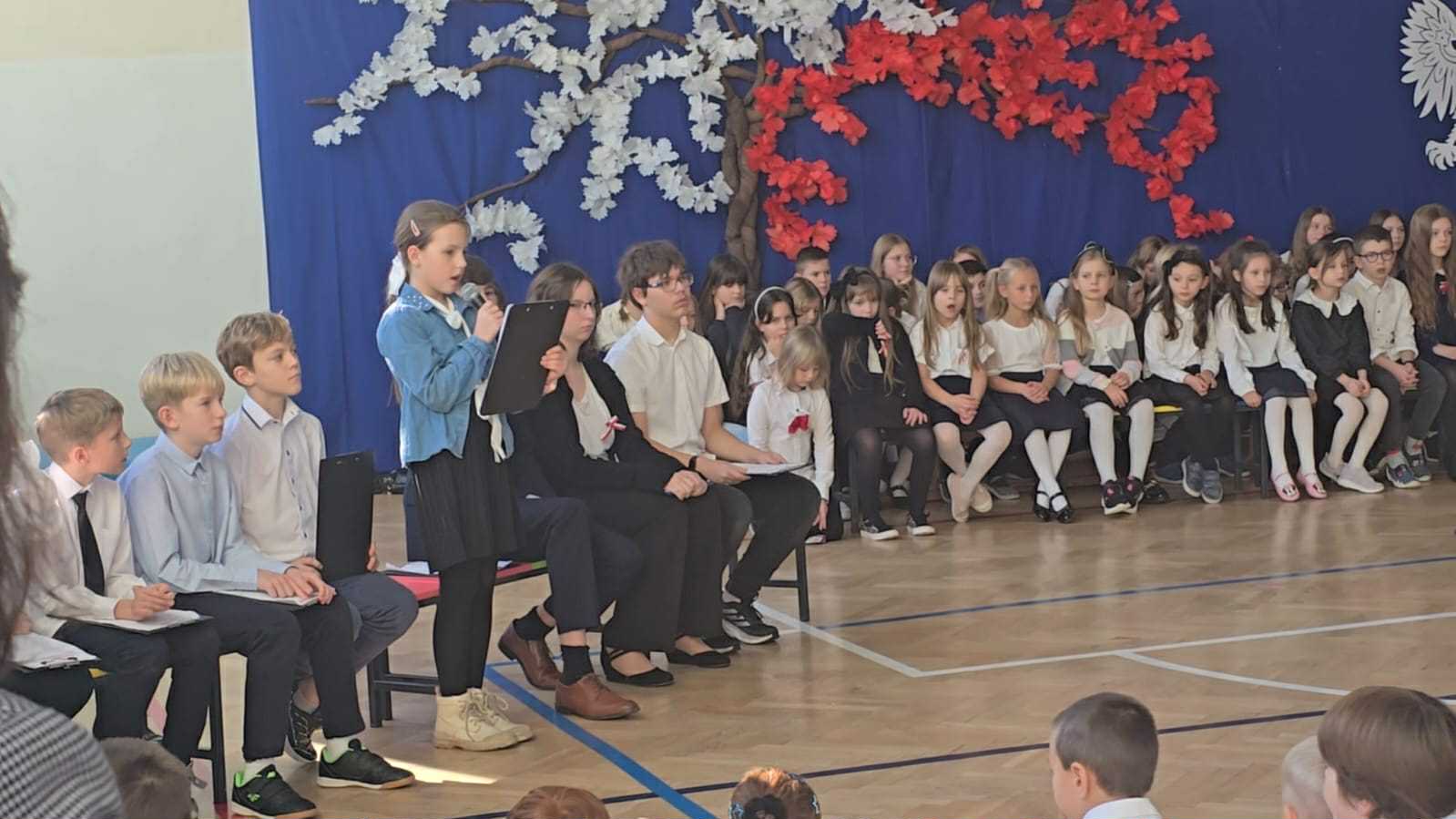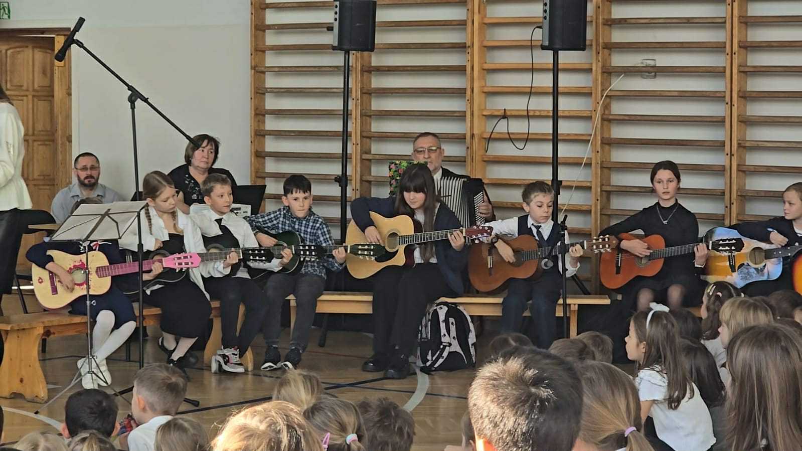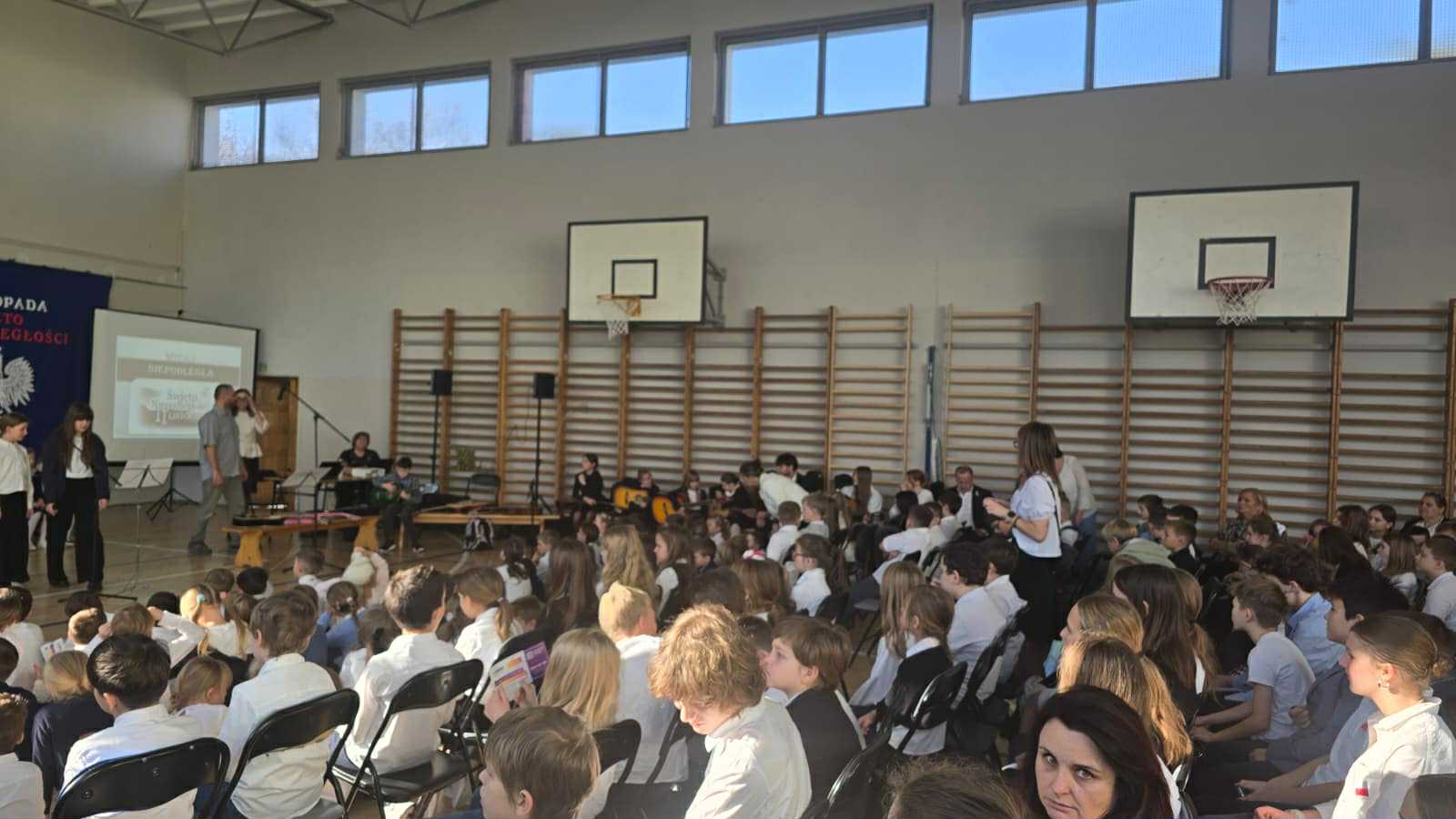 Uczniowie i nauczyciele naszej szkoły wzięli dziś udział w akademii z okazji kolejnej rocznicy Odzyskania Niepodległości przez Polskę. Szkolny chór, zespół instrumentalistów oraz grupa lektorów z nauczycielami zaprezentowali wiadomości historyczne oraz piękny muzyczny i patriotyczny repertuar. Na zakończenie szkolnej akademii wszyscy z dumą i powagą odśpiewaliśmy Hymn Polski.