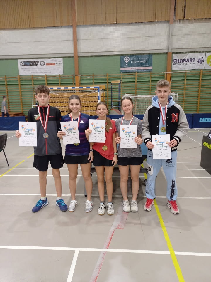 Uczniowie naszej szkoły w kategorii dziewcząt i chłopców zdobyli pierwsze miejsca w tenisie stołowym w Igrzyskach Młodzieży Szkolnej.