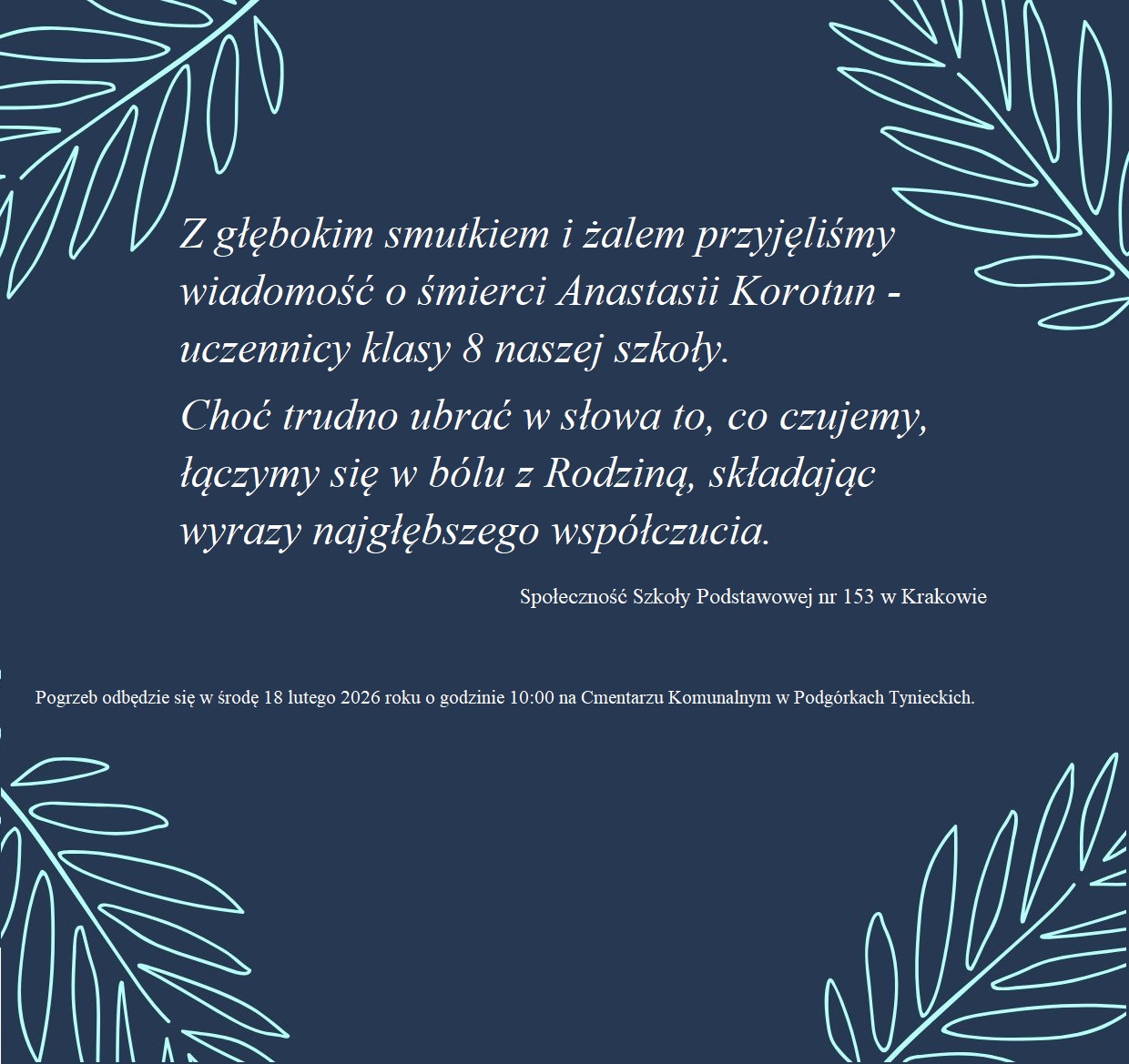 e-mail: sp153krakow(Replace this parenthesis with the @ sign)op.pl